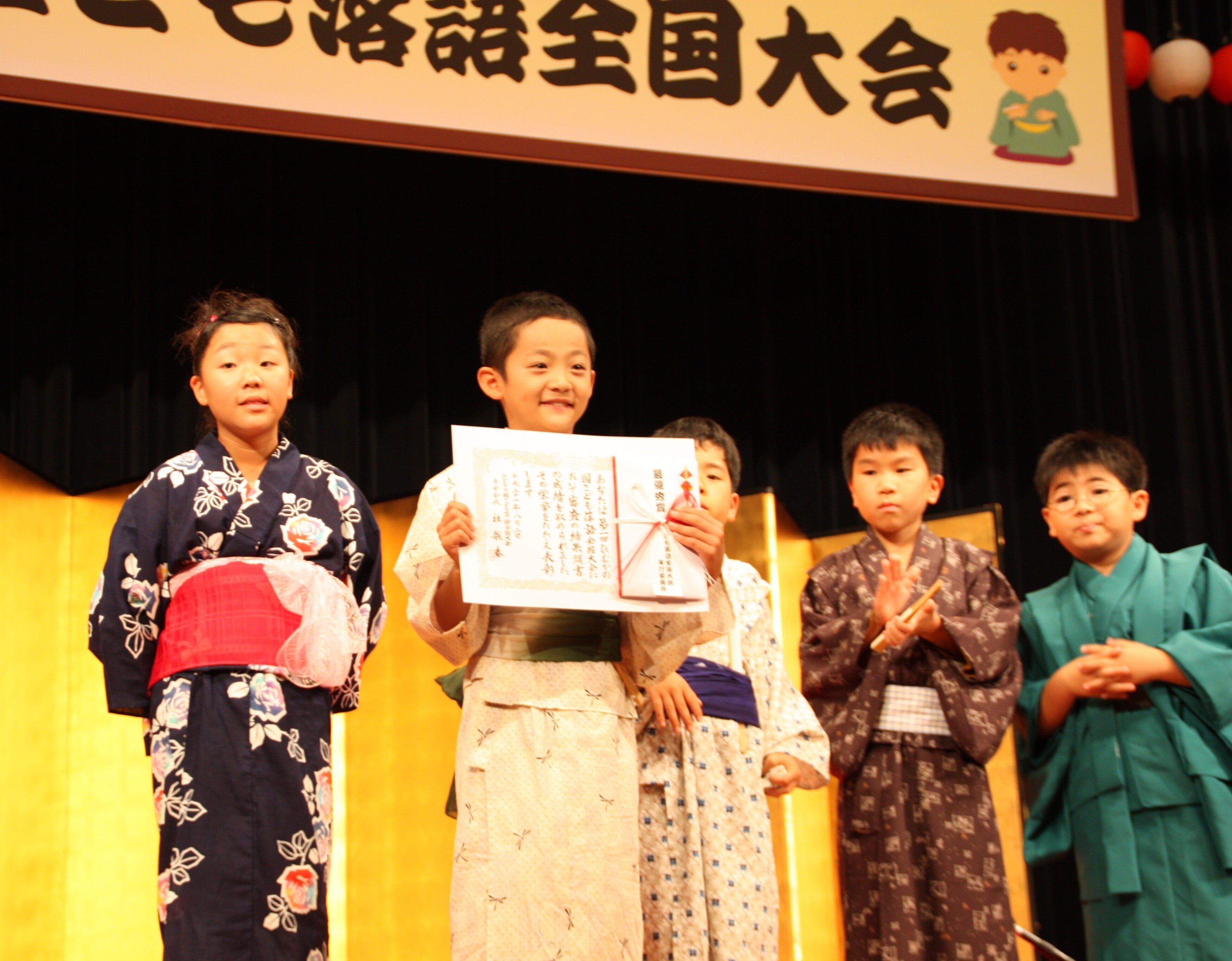 2009年(平成21)年に当時、全国で初の子ども落語家が競う大会として第一回を開催。これまで全国28都道府県と海外1か国から累計578人の子ども落語家の皆さんが出場。日ごろの練習の成果をお客さんの前で堂々と披露し、大いに笑わせ、また時には人情噺で泣かせたりしてまいりました。