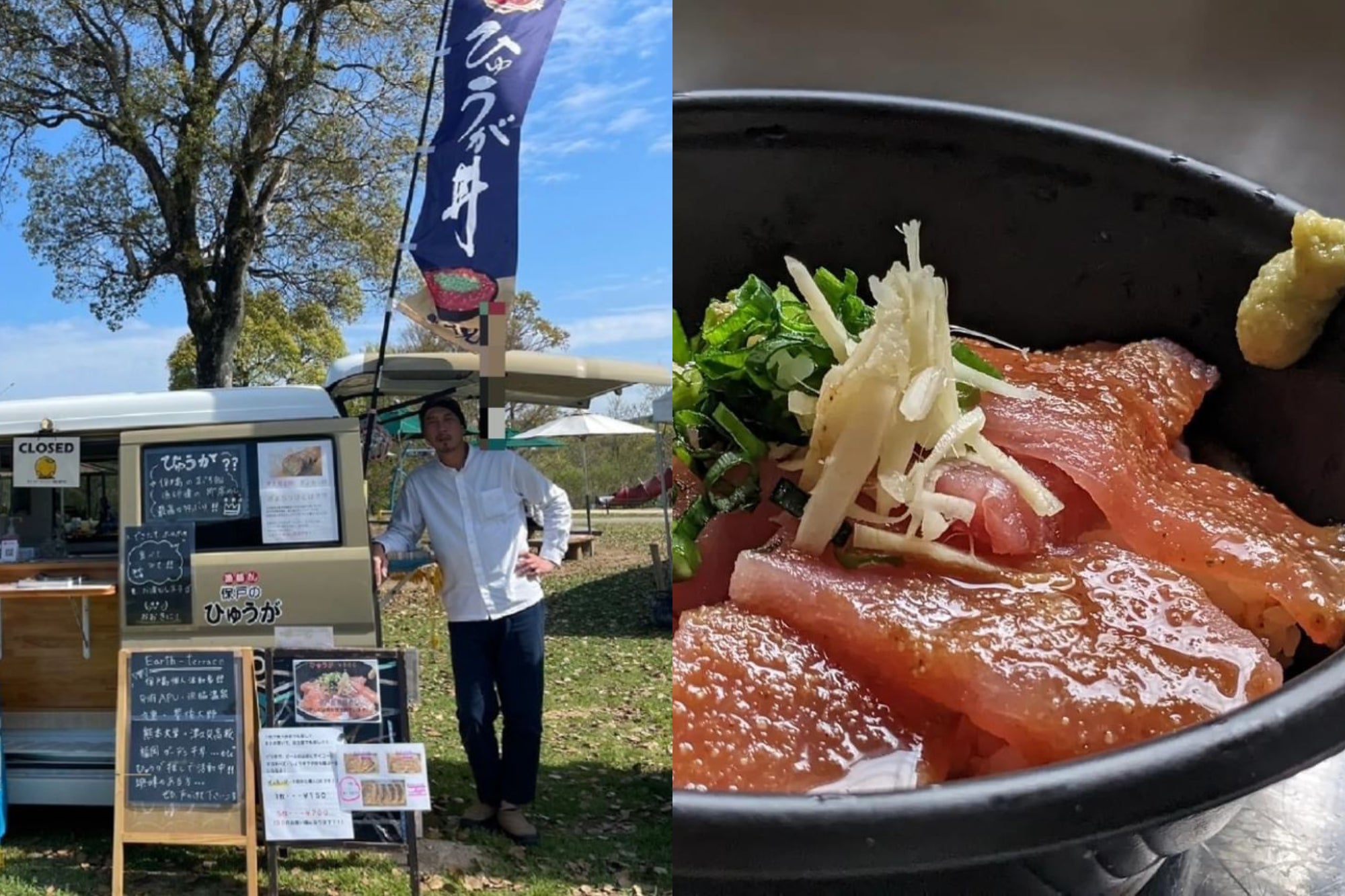エトケンは大阪に20年ほどいた後、約2年前に保戸島に戻ってきて、ひゅうが丼の移動販売を始めました。このどんぶりがうますぎてうますぎて、全国世界中の人に食べてほしい!!とおいしさを広めるために日々奮闘しています!