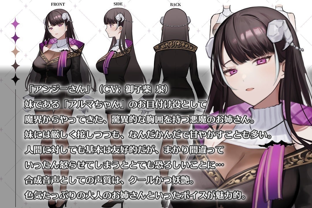 主目標となる「アンジーさん」の合成音声の制作以外にも、ユーザーの皆様にお楽しみいただける様々なコンテンツのリリースを企画しておりますので、ぜひ詳細をご覧いただけますと幸いです。
