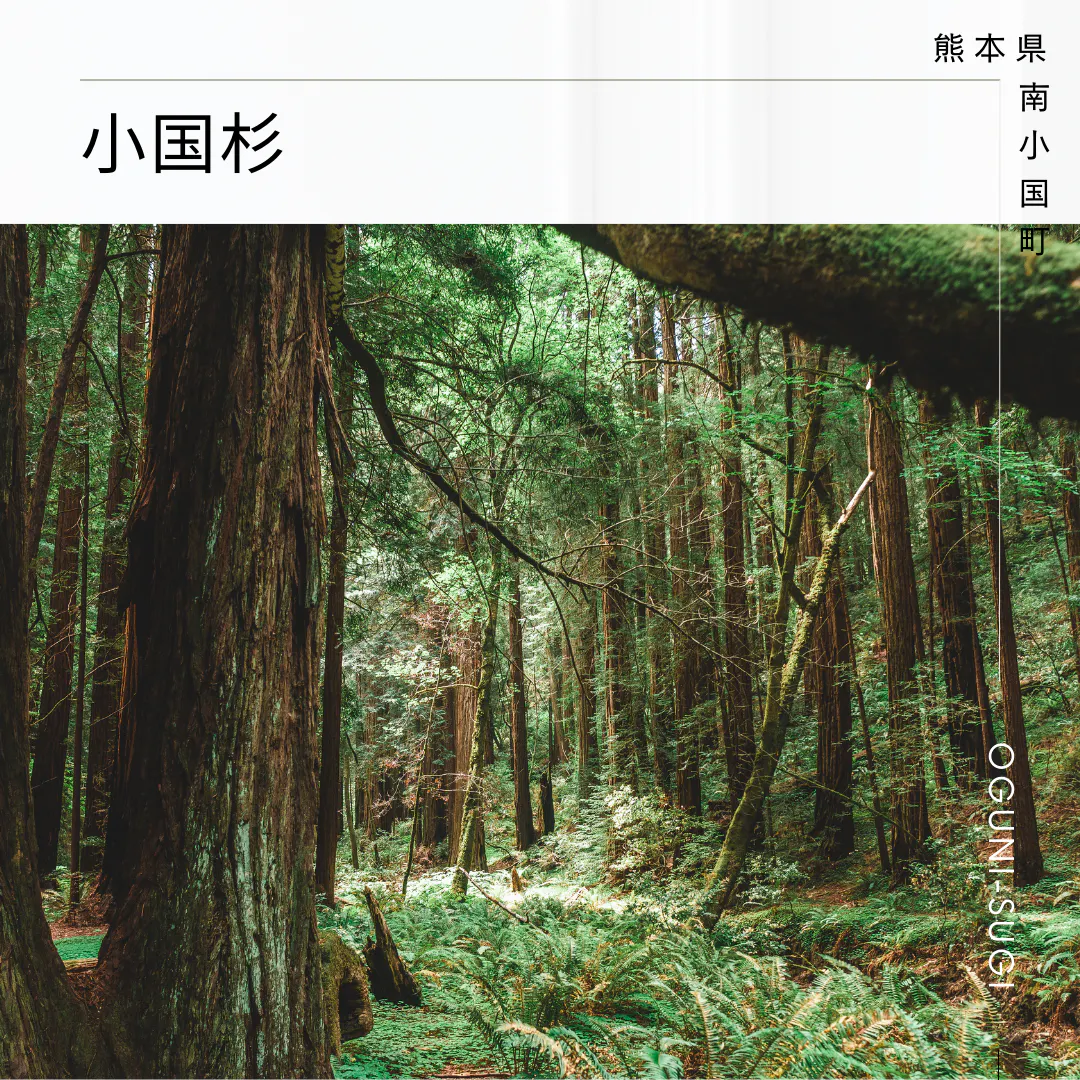 「小国杉」から抽出した精油は、柑橘を思わせるような甘酸っぱい香りと、ウッディで爽やかな森の香りを併せ持ちます。