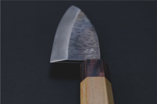 鍛冶屋さんが心を込めて手造りで1つ1つ叩いて作られた魂のある包丁はなかなか出会う機会はありません。この刃物はまるで武士が使っていた刀のような名刀になります。