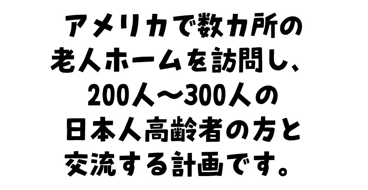 今回のプロジェクトは、そんな私がアメリカの老人ホームを訪問します。