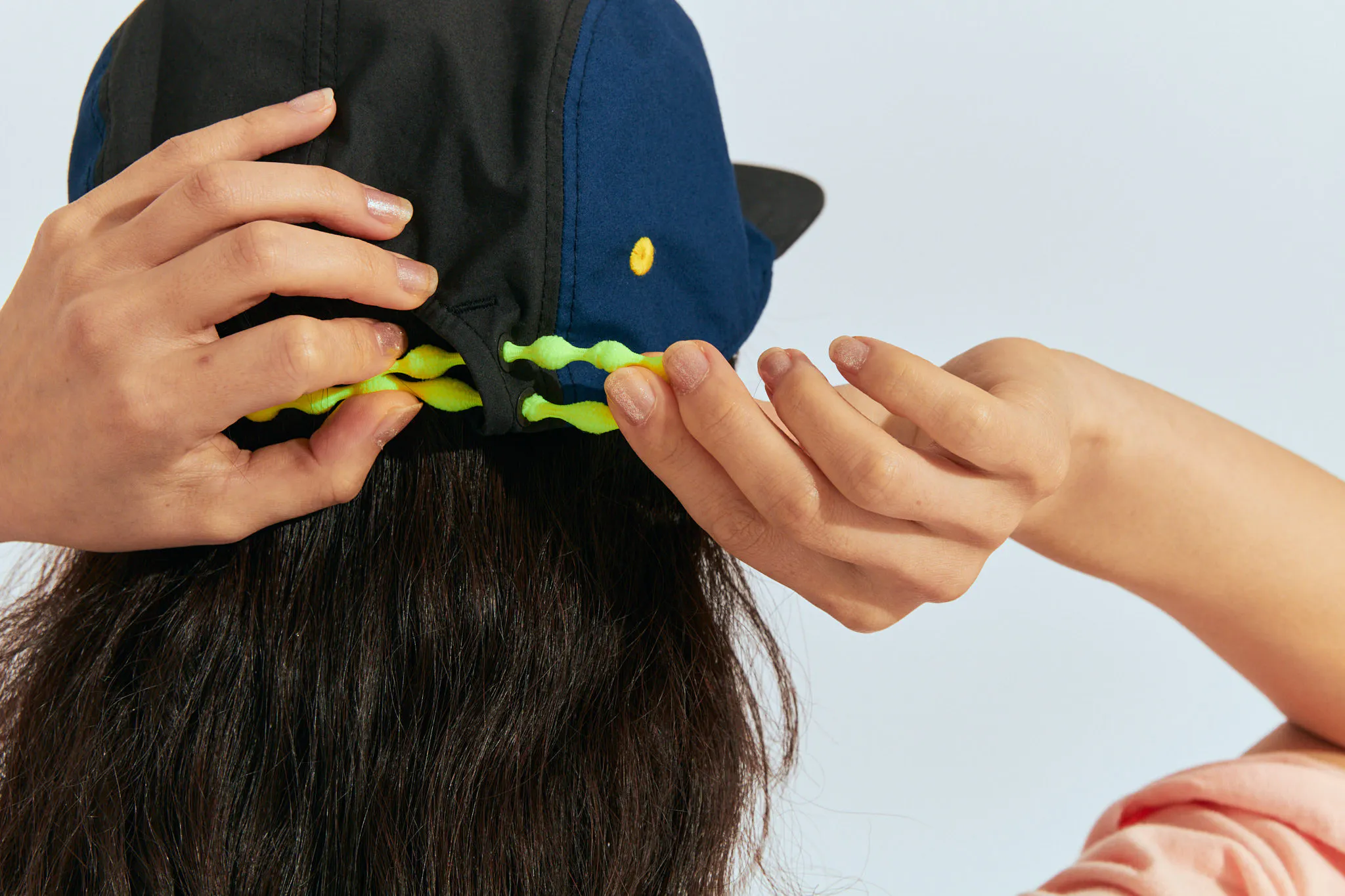 アジャスター部分に特殊な形状の伸縮素材を使用しているため、締めつけ感や窮屈感を感じず、心地よくかぶれます。