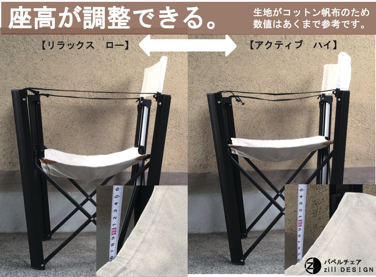 背座の帆布は4本の脚支柱に収納できます。
