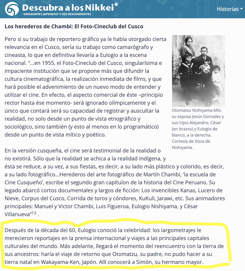 その後、三男エウロヒオ氏は、写真家・映画監督として成功し、1983年に日本に渡航し、和歌山県で長男のシモン氏と59年ぶりの再会を果たしています。