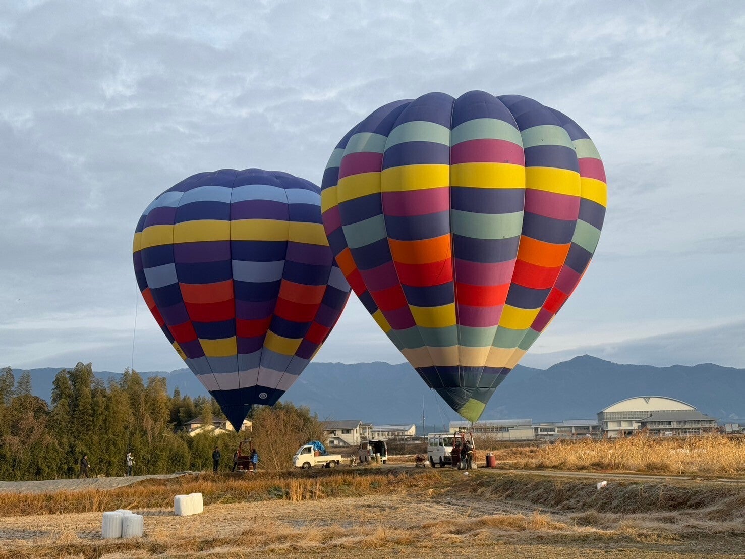 2025/01/12 12:46みなさん、あけましておめでとうございます! 年末年始の「日向かぼちゃカップ」でお会いした方もいらっしゃると思います、担当の渡辺です。 11月の活動報告後は、時間を作るのが難しいほど忙しく、宮大生でいうところ、「かぼちゃ前」を身をもって感じました。 もう受け取った方もいらっしゃると思うのですが、クラウドファンディングの返礼品の受け渡しを徐々に進めています。配送先の変更がある場合は、メールでお申し付けください。【日向かぼちゃカップ】 2024年12月30日から開催された日向かぼちゃカップ。フライトエリアの地域の方々、気球関係者、OBOGに支えられ、愛され、今回で40周年。大きな節目の大会となりました。 宮崎大学気球部が主催者、ということでゆる~い雰囲気を持っている方もいると思いますが、わたしにとっては、たのしみつつ、苦悩の連続でした。 今大会でのわたしの役割は山頂気象班。簡潔に説明すると北から南へ連なる霧島連山を越えられる風があるかをみる計測係です。計測機器の使い方は先輩方に一から習いました。 問題なのは、パイバルを追えるかどうか。遅い風であれ速い風であれ体勢がつらくなり、目が疲れて瞬きをしたら一瞬で消えてしまう、なんてことがざらでした。練習初日は散々な結果になりました。こんな具合で本番うまくやれるのか、心底不安になりました。 去年できなかった山越えフライトをしたい、そのために信頼できる風を探したい。「やりたい」という思いが強く、とにかく練習をしました。フライトがある日は当日のパイバルで練習し、フライトキャンセルの日は大学のグラウンドで。宿入りする前日まで練習に付き合ってくれた先輩方には感謝しかありません。 本番では、目標である10分間計測をほとんどの放球で達成できました。練習の成果を十分にみせることができたかと思います。自分がちょうどパイバルを追っているとき、先輩に「初日の出みえるよ~!」とか「どっかのチームの気球飛んでるよ!」と茶化されたのはいい思い出です(笑) 新気球おひろめも成功!JA-A1751、「hapinus」が1月1日に新年の新しい空へ飛びました。どこかの空で見かけたときは応援よろしくお願いします! もっと見る返礼品を発注しました!~都城シーズン入り~