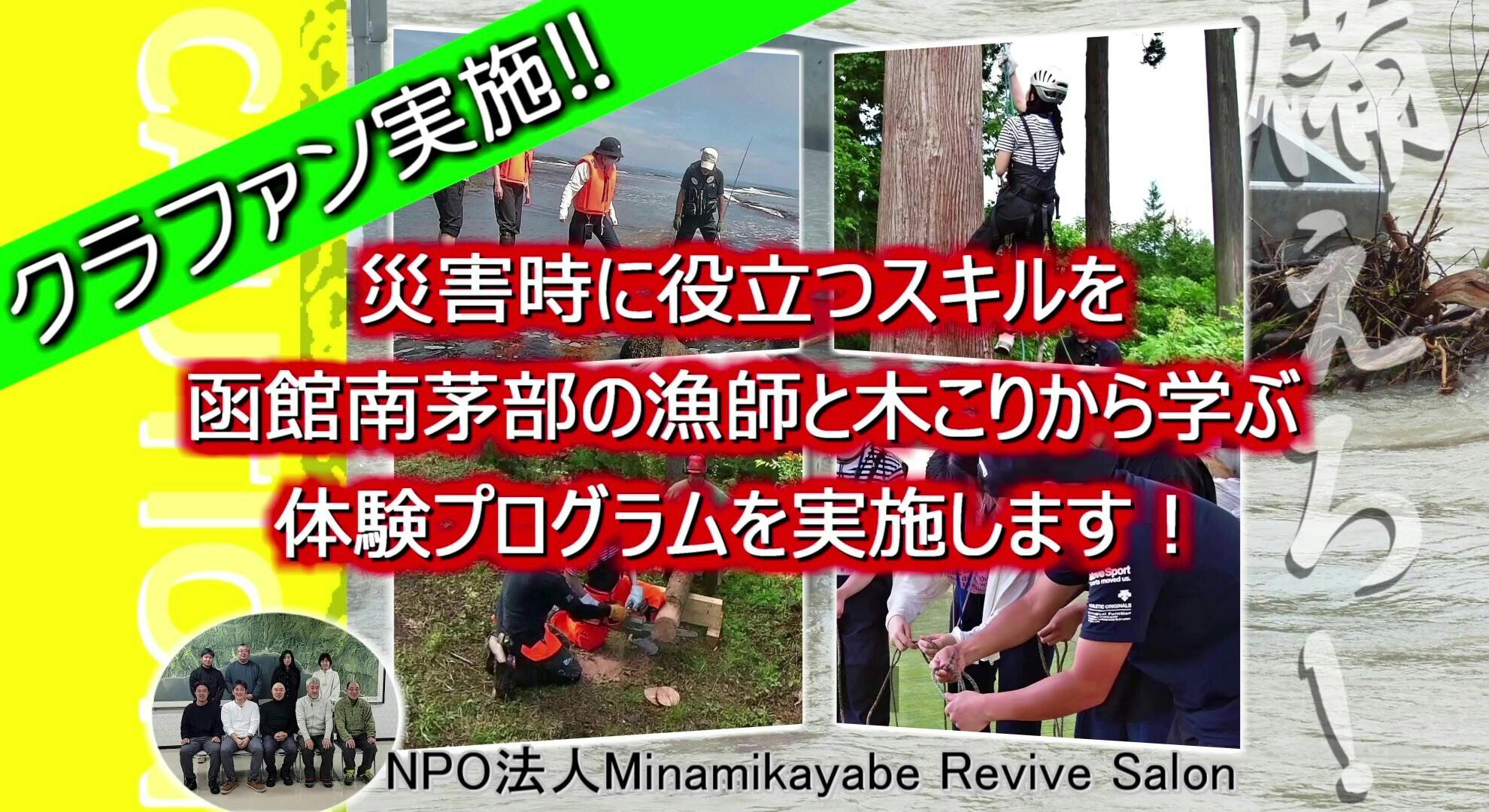 私たちが9月に実施する「災害時に役立つスキルを函館南茅部の漁師と木こりから学ぶ体験プログラム」の準備資金調達の目的で始めたこのクラウドファンディング。