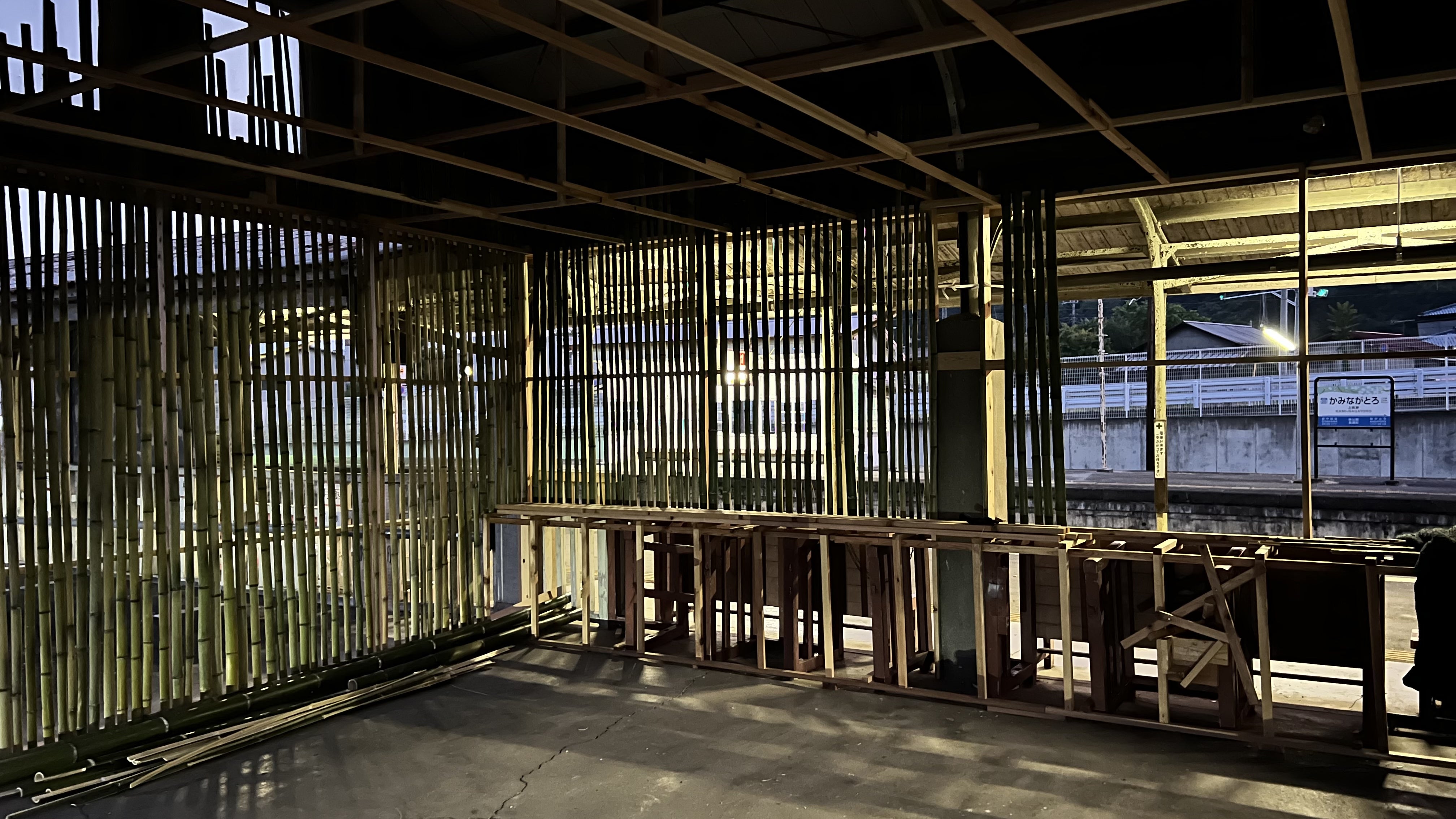 まだ6割ぐらいしかできていませんが、竹の囲まれた空間は居心地がよく明治44年から続く駅舎とも愛称が良いです。上長瀞に来たお客様が、写真を撮りたくなるような空間になるはずです。