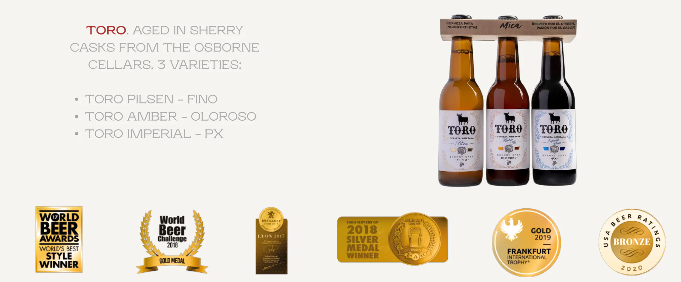 スペインのリベラデルドゥエロ地方で作られたクラフトビール。このビールはただのビールではなく世界三大酒精強化ワインの一つ、シェリーを作った樽で熟成をしたビールなんです。しかもスペインで2番目に古いと言われているオズボーン社の樽を使用しています。ビールが苦手な方でもふわっと香るワインの香りで飲めてしまう爽やかなビール!このビールをぜひ日本で流行らせたいなと考えております!