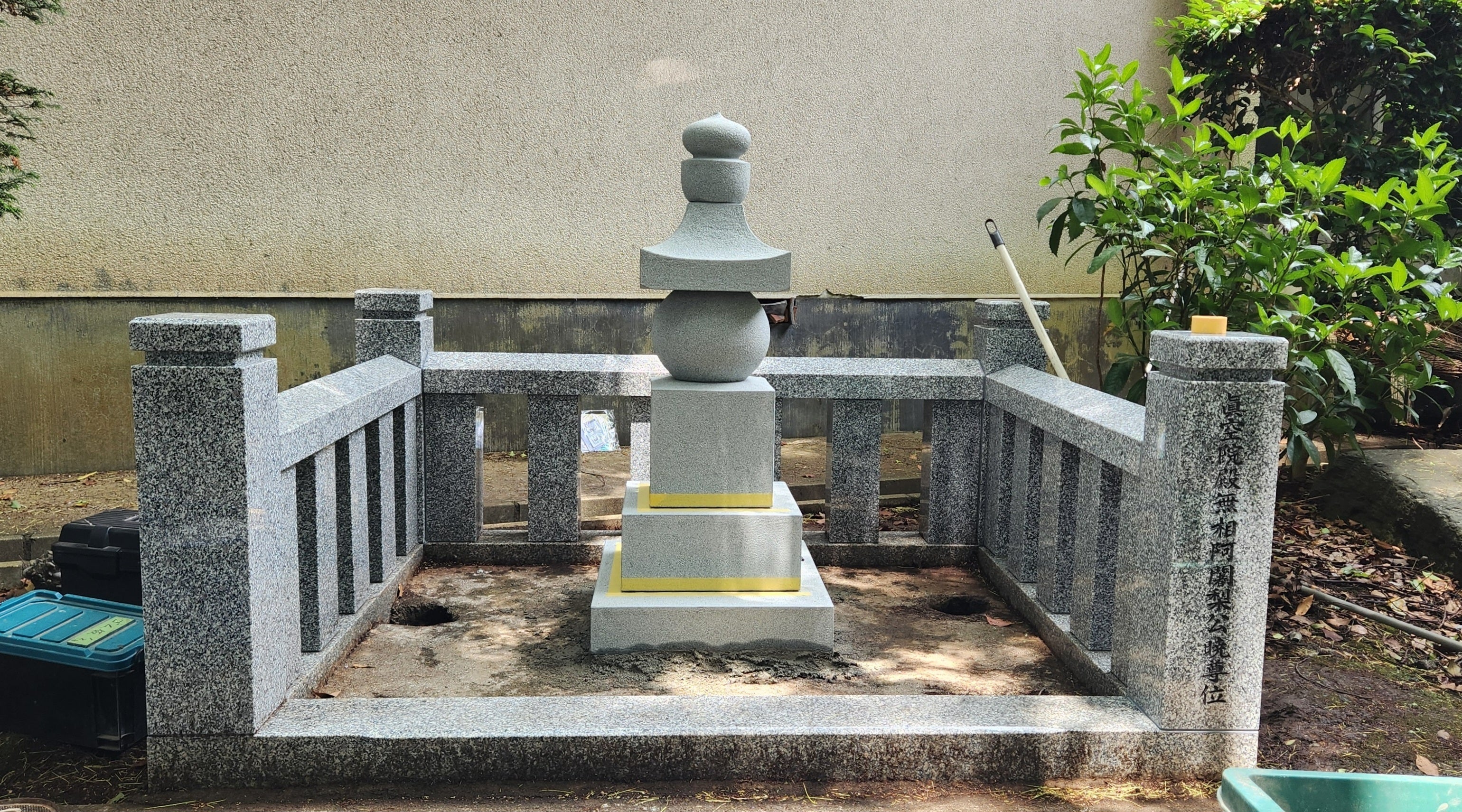 6月12日に興国石材様が供養塔本体の工事を行なってくださいました。暑い中朝早くから工事を始めてくださっていました。ミリ単位で調整しながら一段ずつ重ねられていく五輪塔に感慨が込み上げます。中心にはステンレス棒が入り、崩れにくい工夫がされています。昔ながらの工法だとやはり崩れやすいとのこと。興国石材さんは被災地まで出向いて天災でも崩れにくいお墓の弱点を研究しておられるとのこと、頼もしいです!数時間で無事、玉垣と五輪塔が建ちました。これから完成披露にむけ、香炉を取り付け、砂利を敷いてくださるとのこと。そしていよいよ明日22日、阿野祭にて完成式典が執り行われ、公暁供養塔の歴史が始まります。何度も波瀾に見舞われた公暁供養塔計画ですが、様々な絆に支えられ、やっとここまで来ることができました。これからも長く永く残せるよう、守って行きたいと思います。