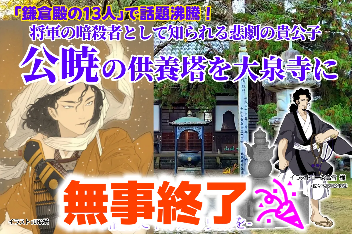 「公暁の供養塔を大泉寺に~墓所の現存しない公暁に800年越しに供養塔を!」