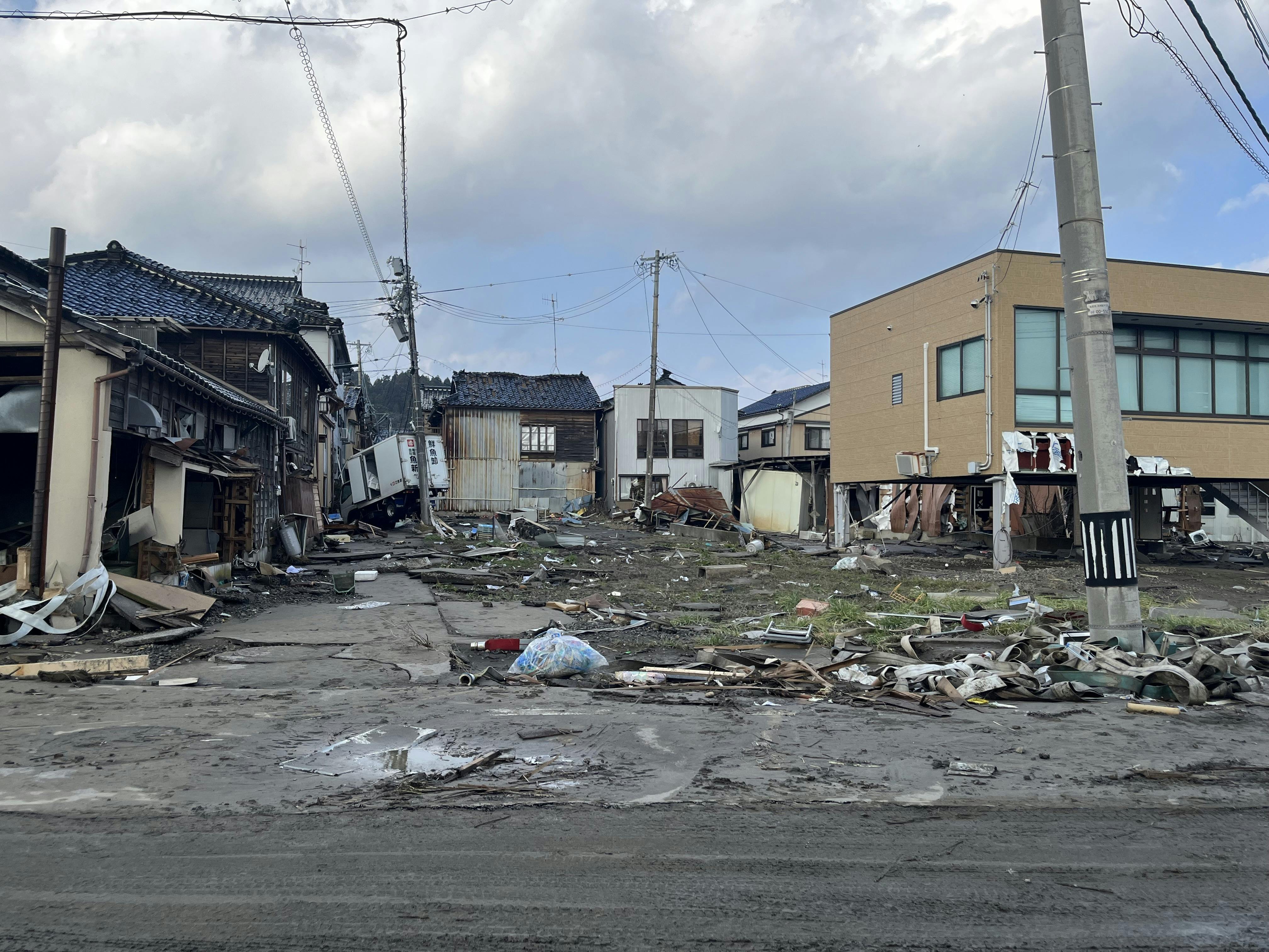 避難所でのカオスのような一夜を過ごし、日の出と共に、車まで戻り、車を温めてから自宅へと向かいました。自宅に向かう途中の道は、まるで見た事のない光景に様変わりしていました。めちゃくちゃに砕け散った家々を見ながら、なぜここだけこんなになっているんだ、と初めは理解ができませんでしたが、「津波か?」と思った時、私は震え上がりました。それが津波の破壊力でした。海岸線側の道路に面した我が家も、もう津波に巻き込まれ、大変なことになっているだろうことは想像に固くありませんでした。半地下の倉庫に津波が流れ込んでしまえば、中の在庫は全て台無しになってしまいます。そもそも建屋がきちんと立っているかもわかりませんでした。変わり果てたショッピングセンター辺りの光景に震え上がり、気を落としながら、ゆっくりと車を走らせ、ラポルト珠洲の駐車場を越えた辺りで、ふと見ると、家の周りの道路があまり変わっていない様子でした。