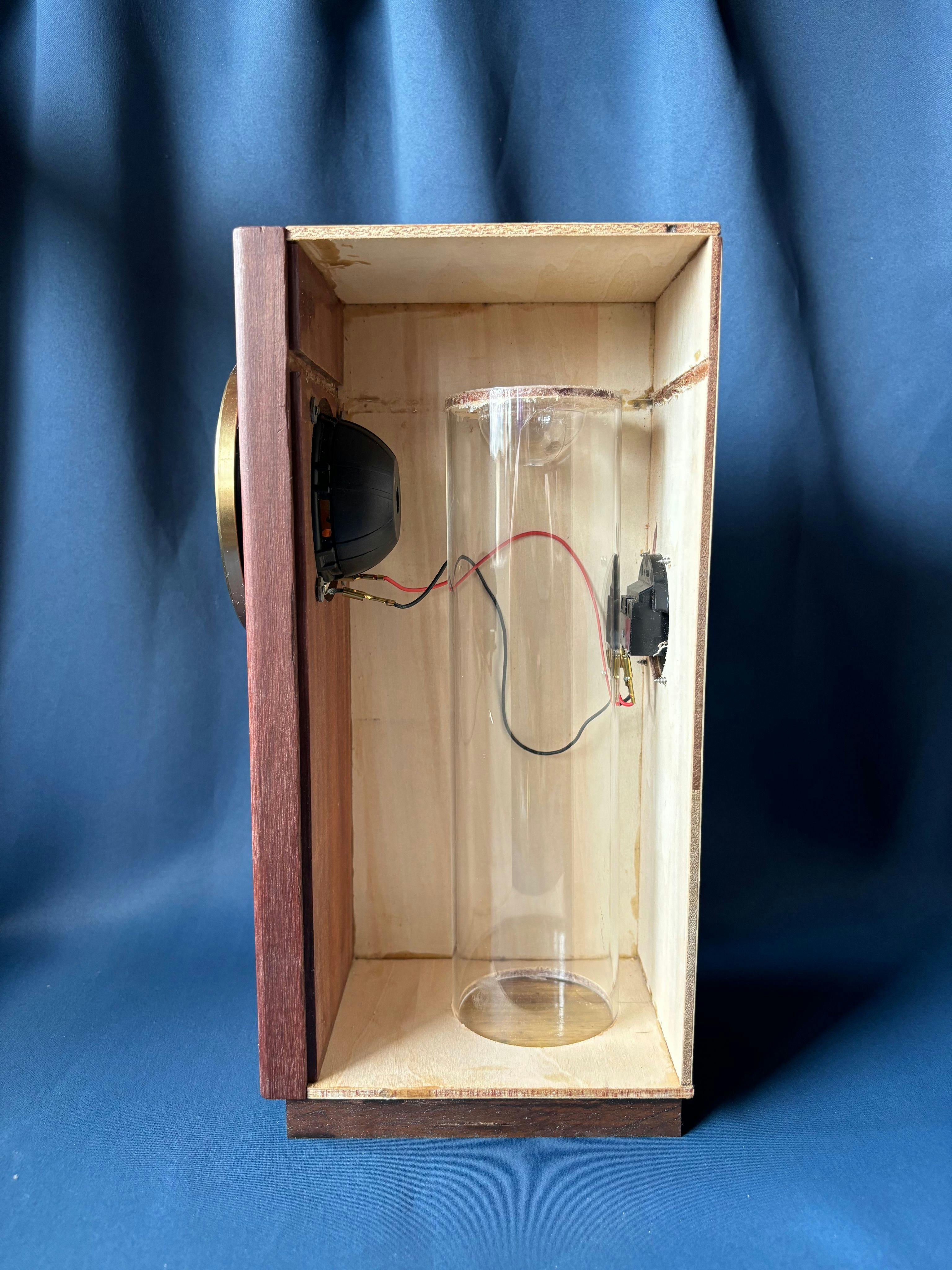 ドームの材質はアクリルであり、厚みやドーム直径、穴の直径などは、実際に音を出しながら調整して決めたものです。