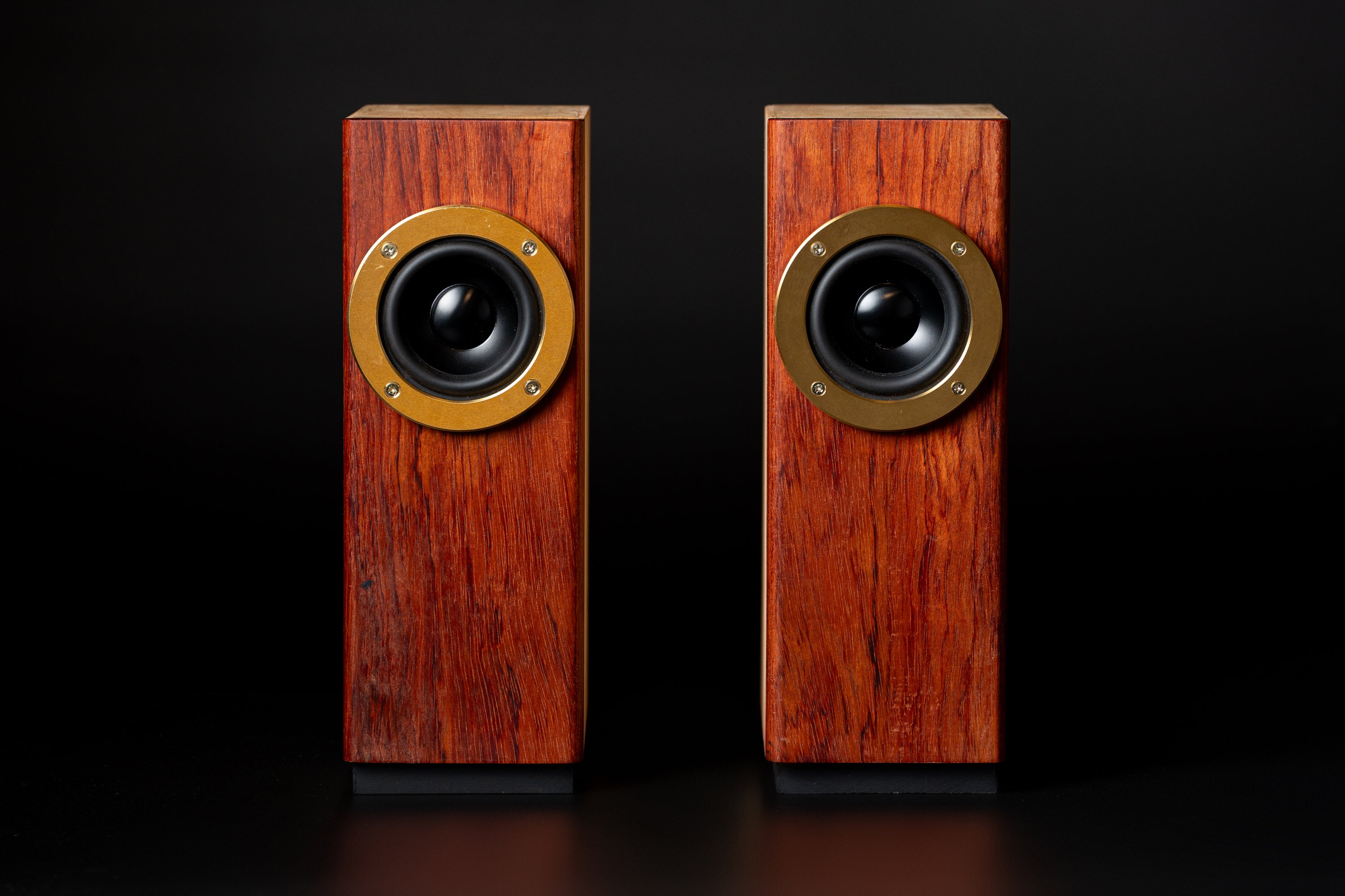 スピーカー前面の板には、「ブビンガ」という材質を使っています。