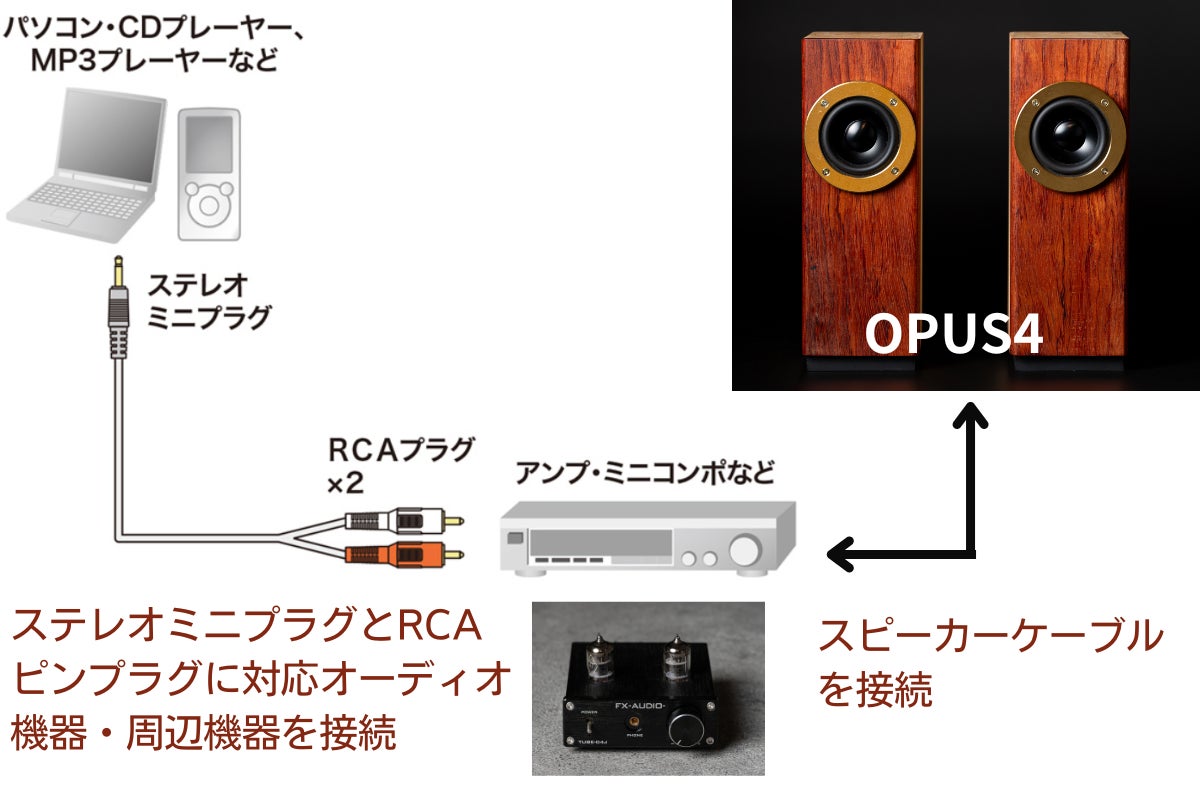 アンプとOPUS4の接続については、スピーカーケーブルをお使いください。