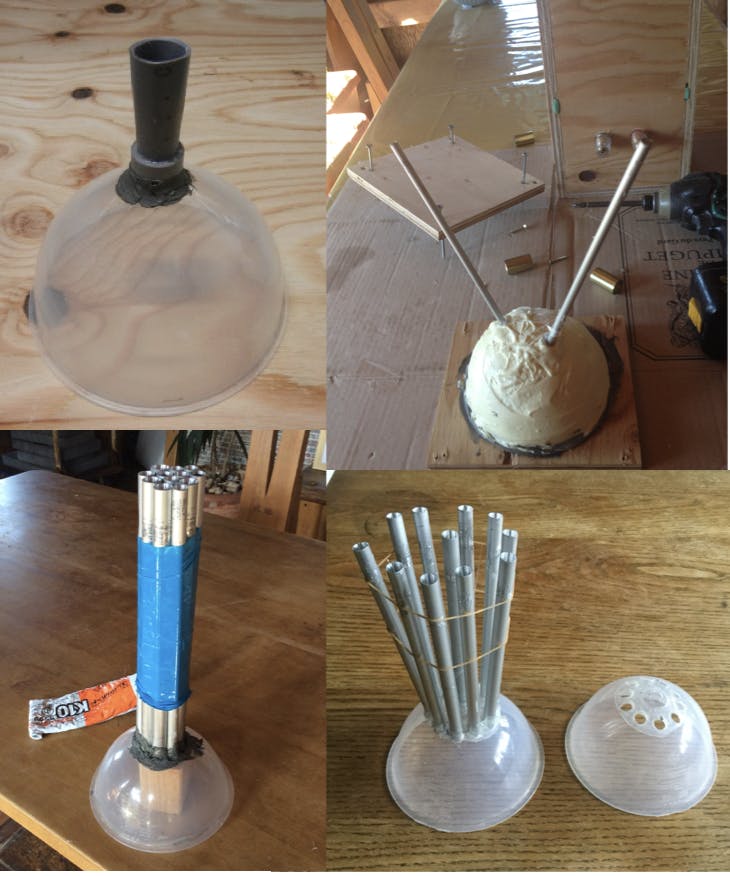 パイプを何本も挿したり、サイズや長さを変えてトライしています。