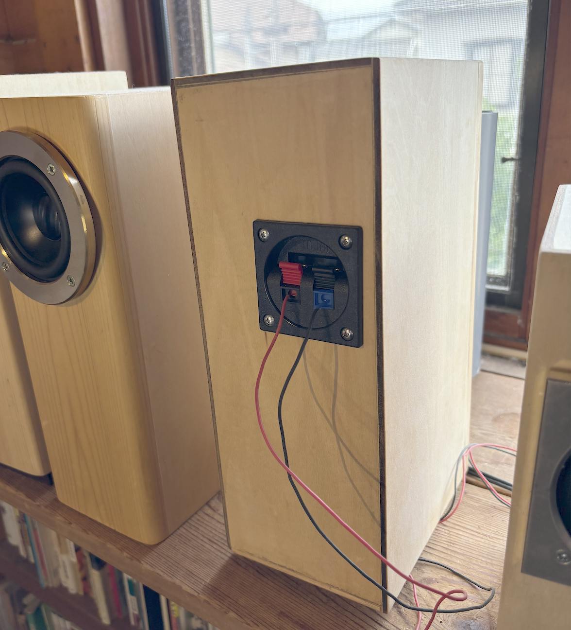 スピーカー・ターミナルは、ケーブルを噛むタイプにてしてあります。バナナプラグを使うタイプは格好良いのですが、結構ビビる時があるので使いません。