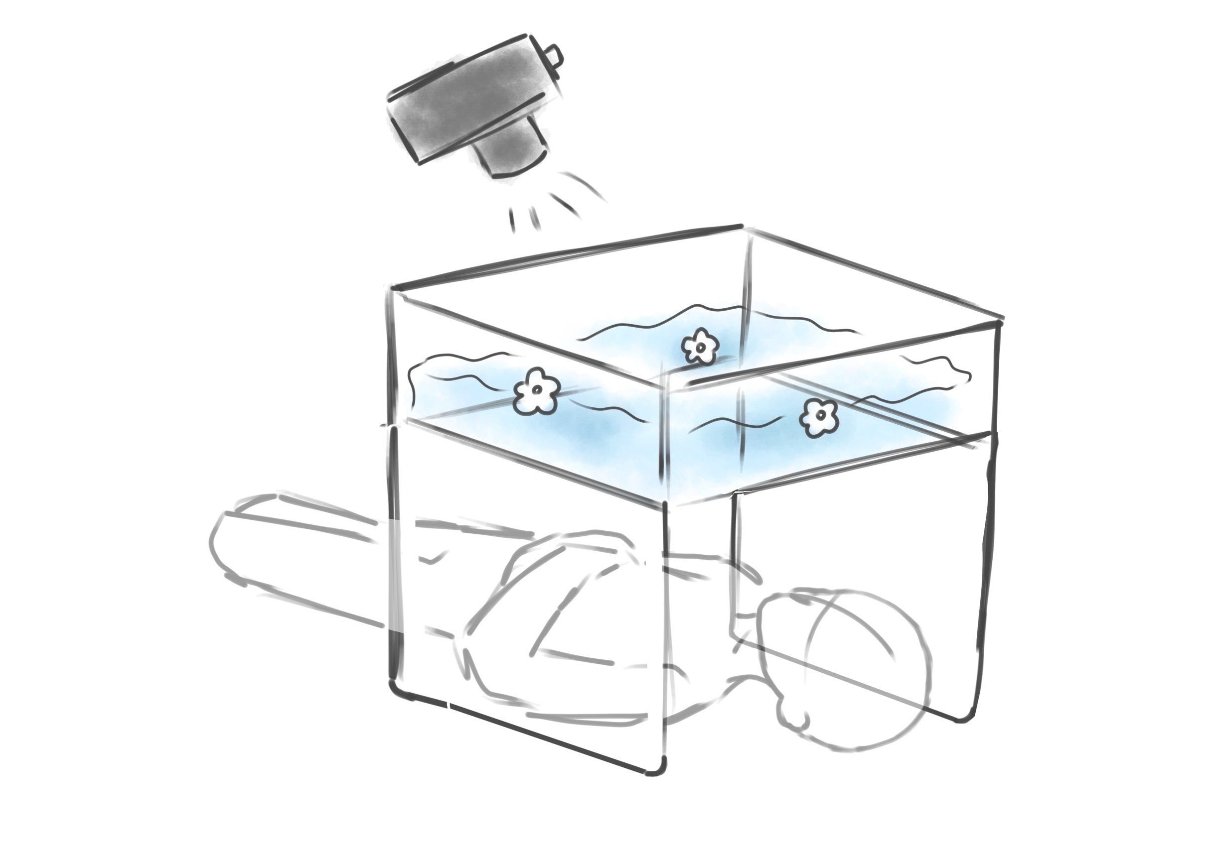備品のご希望として以前よりご要望の件数が多かった【水槽】の使用イメージイラストです。