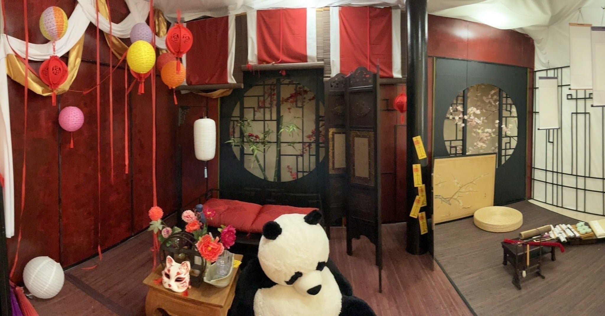 中華ブースの撮影ポイントを増やして欲しいということで、『丸窓』が付いた壁を増設することでブースを縦横どちらからでも撮影できるようにします。