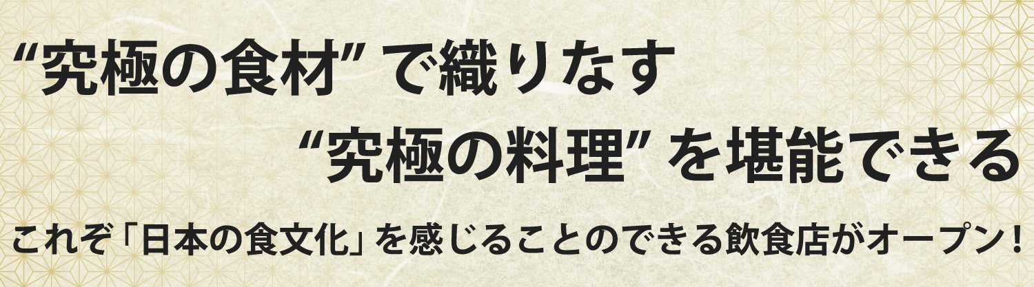 全国各地に点在する【究極の食材】を通して、お客様に「おいしい!」というシンプルかつ贅沢な感動を味わっていただけるお店は、これまで多くの生産者さんたちと向き合ってきたFGJだからこそ実現できる新しいスタイルの飲食店です。