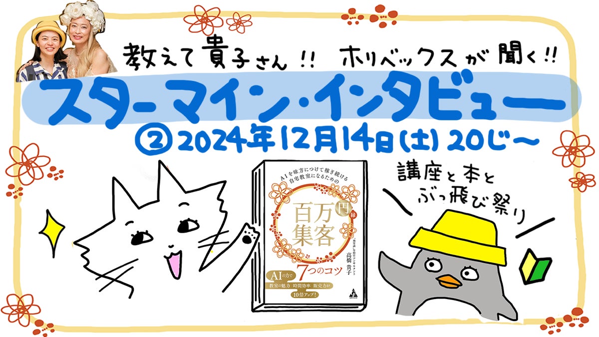 2024/12/15 19:56【最後のお知らせです!ぶっ飛び祭りファイナル!&ChatGPT講座受付いよいよ本日最終日 あと数時間で終了です~】こんにちは。高橋貴子です。ぶっ飛び祭りクラファンhttps://camp-fire.jp/projects/756882/viewなんだか、あっという間の75日だったなーー。スタートは10/1。そして、今日はファイナル!なんだか、なーー。。嬉しいような、寂しいような。。。(笑)ㅤ7日間は毎日0:00からのライブ。まずはスタートダッシュ。割と早くもともとの100万の目標は達成して。そして、途中はぼちぼちやってて、、途中もリターンを追加しまくって(笑)結局60個ぐらいリターンを入れ込んだら、、ㅤ【中身が濃すぎて、最後まで全然読めない!こんなのあるなら先に知りたかった!】(笑)ㅤと売れ切れになってから、嬉しいクレーム(苦笑)などもいただきながら、動いたあっという間の75日目。今回のぶっ飛び祭りは・天井無き目標金額・終わりなきリターンの追加 を目指して動いてきました。私のクラファンは、・記録に残る(目標支援金額が高いもの)というよりも【記憶に残る】クラファンを目指しています。(笑)多分、こういうクラファンは向こう2,3年はやらないし、つか、やったとしても、こういう金額ではもうやらんわ。(笑)だって、もう「記憶に残る」を体験できたから、この領域はしなくてもいいやと。売れれば売れるほど【赤字】が確定していくおかしな状態になっている【高橋貴子のぶっ飛び祭り!】いよいよファイナル!!最後まで花火を打ち上げまくってスターマイン状態で、ぶっ飛び祭り応援団のみんなと駆け抜けますーー!ってことで、今日は、お祭りライブ4時間やります!!------------------------------------------------12/15(土) 20:00-21:00ほりべちゃんとクラハでぶっ飛び祭りライブ12/15(土) 21:00-24:00ぶっ飛び応援団と一緒に・Youtube FB 画像付き ライブ・クラハで引き続きぶっ飛びライブなんとー4時間 3次元中継でお届けします好きな時間、好きな場所に聴きに来てくださいさぁぶっ飛び祭りファイナル!スタート!です!----------------------------------20:00-21:00ぶっ飛び祭りフィナーレ!ド派手に打ち上がる花火のように盛り上げるよ〜2025年を運気爆盛りでスタートさせたい人はカモーンクラブハウスhttps://www.clubhouse.com/invite/DwdIQyowYwwBpDN8jQ0vQ78ggrL0FaYlNbl:hGo4iL8KkNmpBEIrQ5e7vJtOxkcNfjdBc1wqdDHarCs?fbclid=IwY2xjawHLlHxleHRuA2FlbQIxMAABHdX9--bJ6zCQIkYMaT7_ED7F-p428i1vlOd33f3MJ_XKVwk-pmlN_VYF2w_aem_0-lxCmw9OdNCpIVRgB_nbQfacebookhttps://www.facebook.com/takako.takahashi.395/Youtubehttps://youtube.com/live/EWHRAp7TLkc---------------------------------------21:00-24:00https://www.facebook.com/takako.takahashi.395/Youtubeはこちらhttps://youtube.com/live/EWHRAp7TLkc最後までお楽しみください!高橋貴子 もっと見るぶっ飛び祭りラストデー 前夜祭 12/14 スターマインインタビュー!