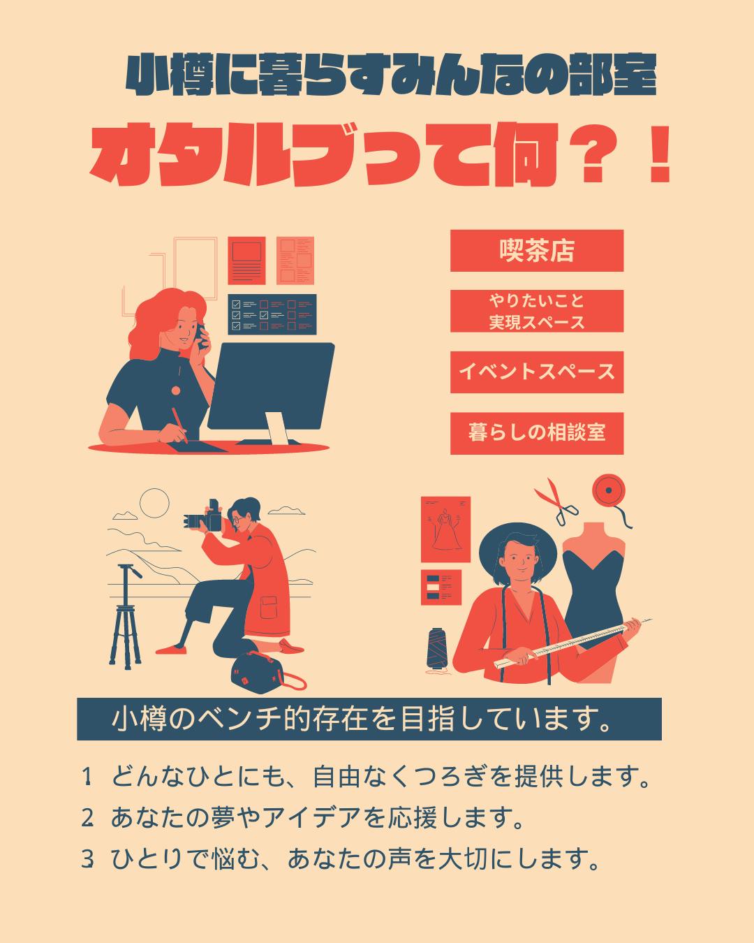 生まれたばかりのオタルブですが、小樽に暮らす、小樽でひと時を過ごす方々がありのままの自分で居られる時間を提供できるよう場づくりし続けたいと思います。