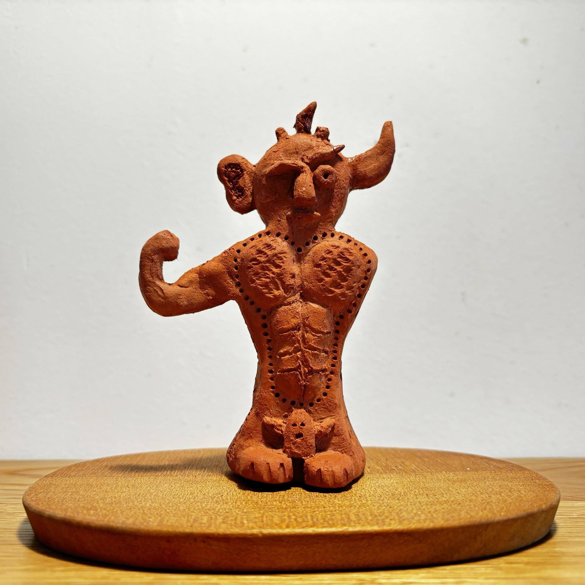 ↑土偶。その他、立体物制作や作詞など幅広く表現活動を行っている。