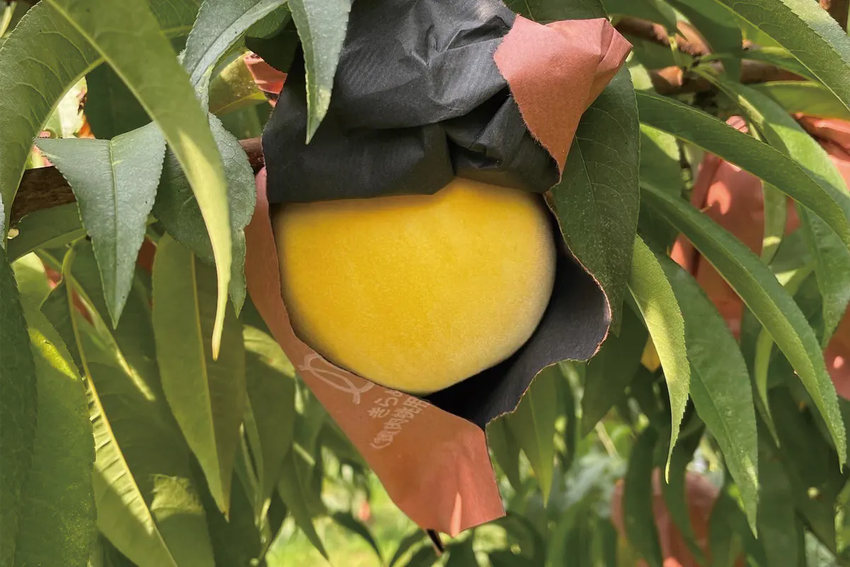 白桃は手作業で1つ1つに袋をかけて、直射日光に当たらないようにします。