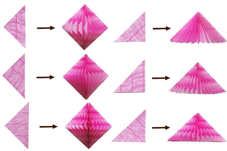 ハニカムとは「ハチの巣」という意味で、広げるとハチの巣のように見えるところからハニカムティシュデコレーション(Honeycomb Tissue Decoration)と呼ばれてます。欧米ではクリスマスやハロウィンの装飾品として、中国では春節の赤い提灯、日本では「でんぐり」と呼ばれ、「七夕飾り」でお馴染みと思います。