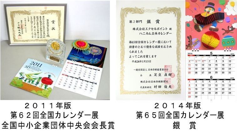 日本印刷産業連合会主催の「第62回全国カレンダー展」では2011年版が「全国中小企業団体中央会会長賞」を受賞するなど、数々の入賞歴もあります。