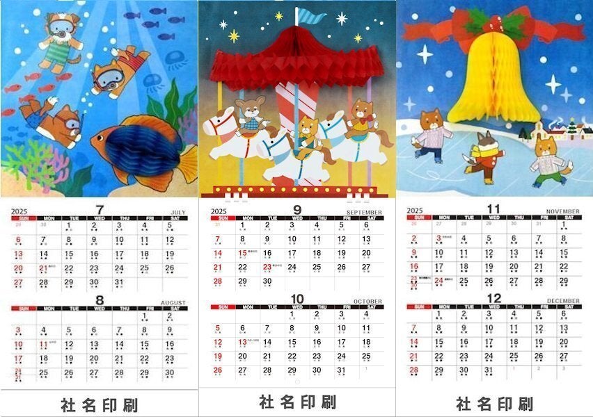 中でも、かわいいイラストに立体ハニカムデコレーションを合わせる他に無い表現ができるカレンダーは、ご購入いただいた皆様、カレンダーを受けとられた皆様の2025年を素敵にするための1冊となることを確信しています。