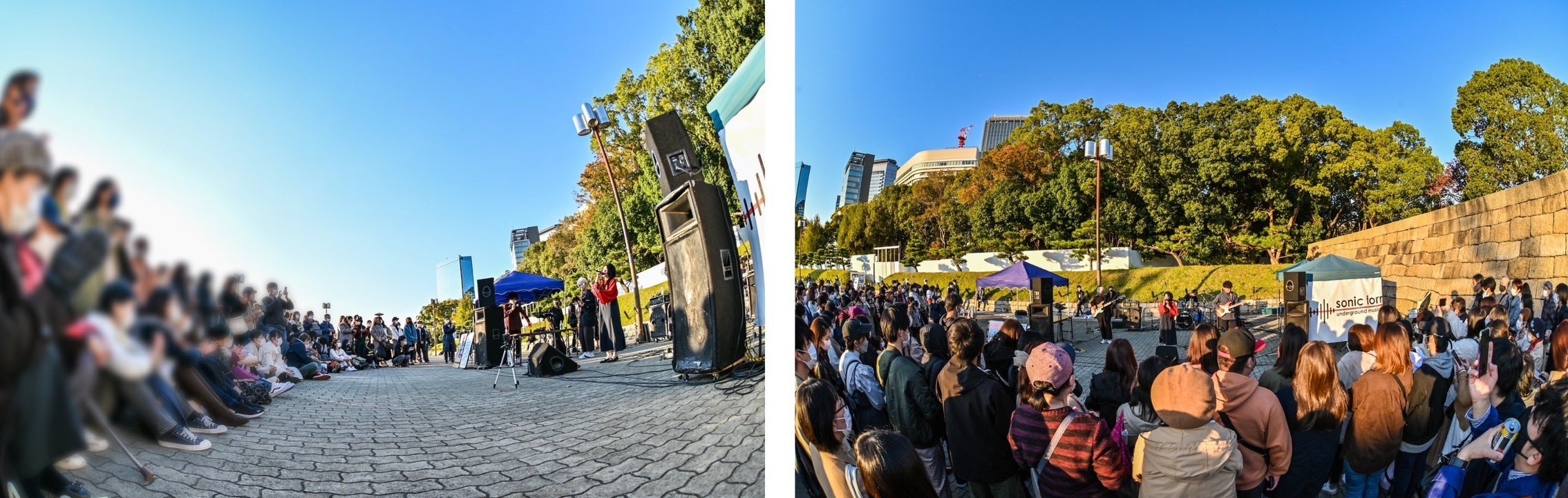 「城天ストリート」とは、第二次バンドブームがあった1990年代初頭から、毎週日曜日に大阪市公認で本格的な音響セットを組み、野外のフリーライブができる大阪の音楽カルチャーの一つ。数々のメジャーアーティストを輩出したインディーズ音楽シーンを牽引してきました。