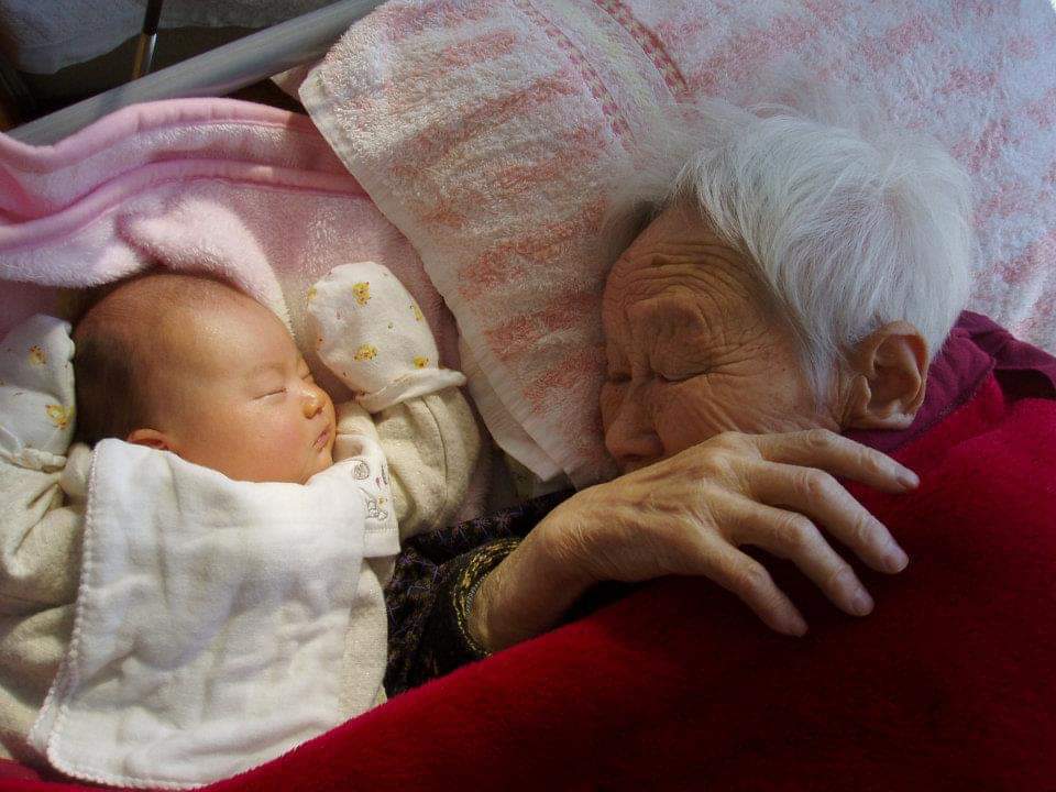 (職員の赤ちゃんとデイサービスのおばあちゃん/お昼寝)