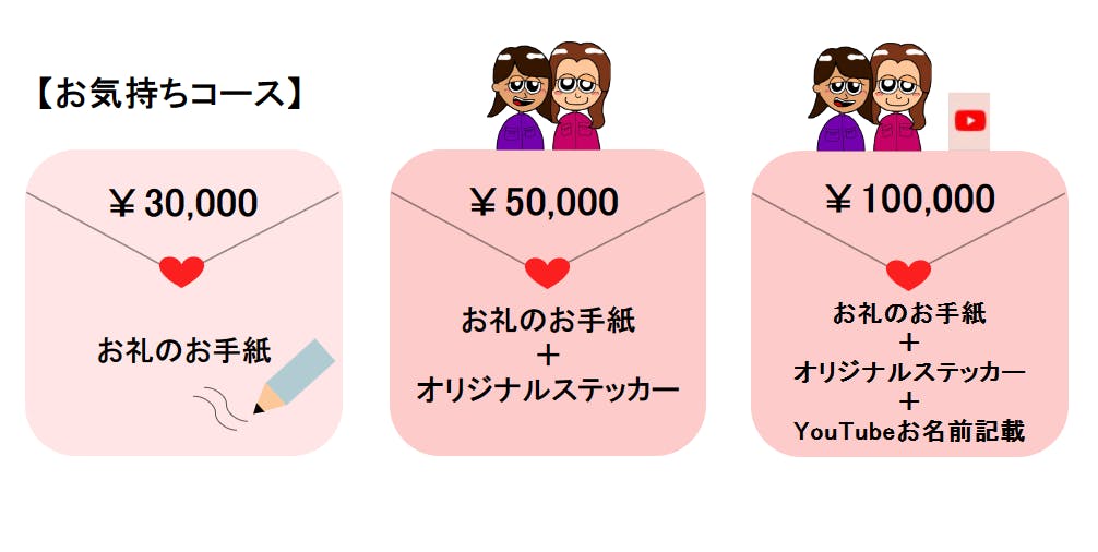 支援者の皆様には支援金額に応じて下記のものをリターンとして検討しております。