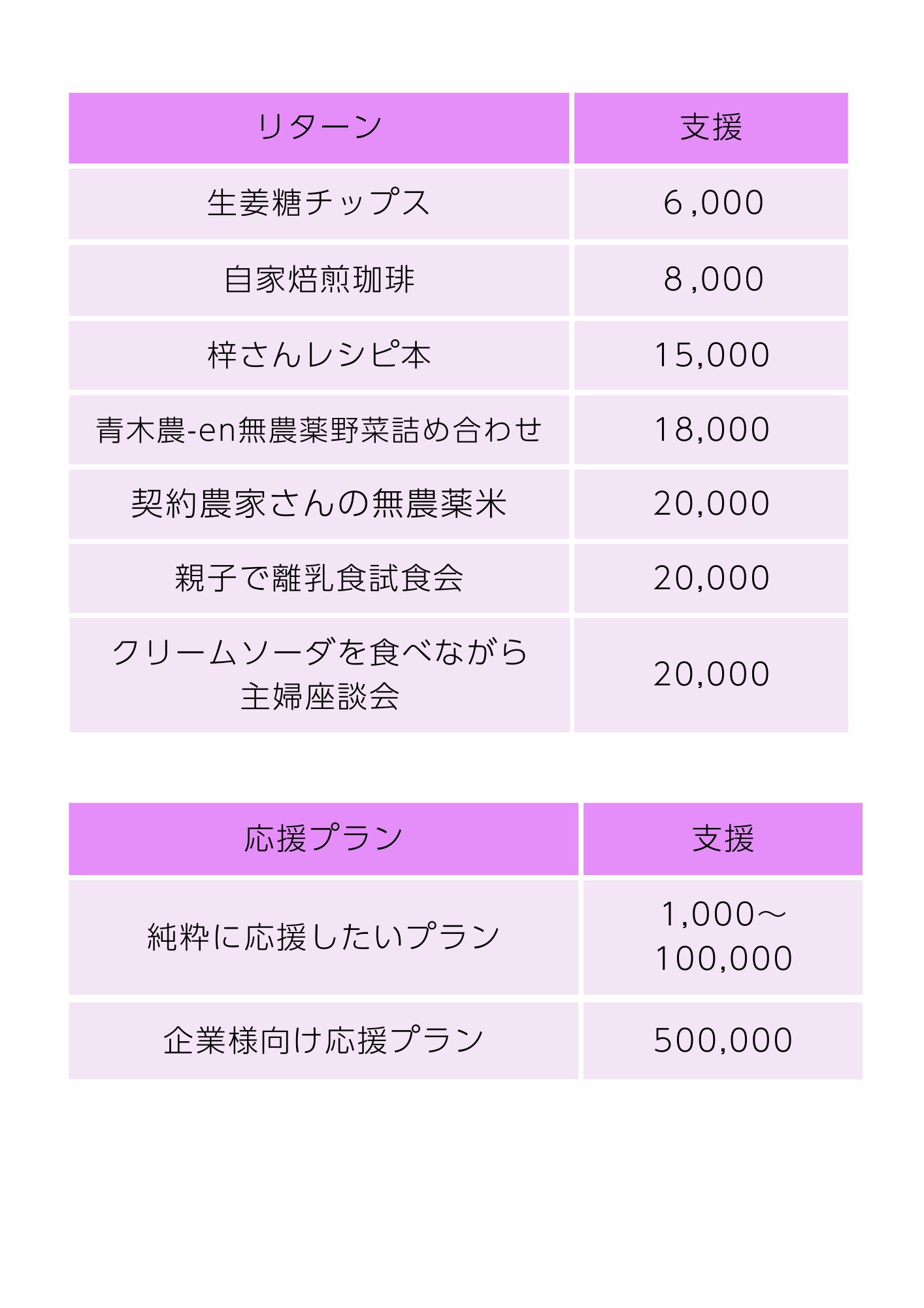 この事業に協力してくださる方達の想いがぎゅっと込もった商品を、リターンとしてご用意させていただきました。