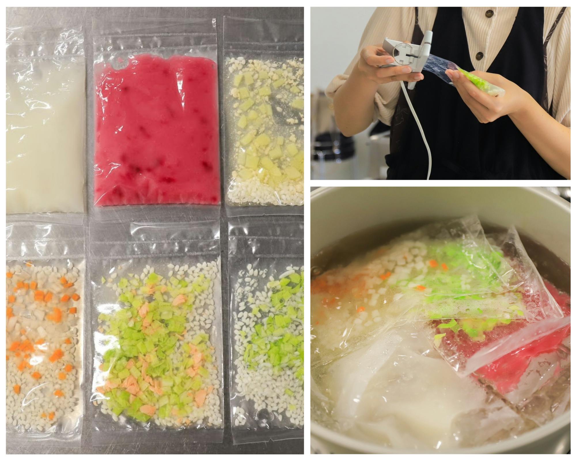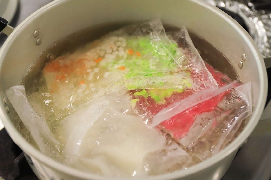 まだレトルト釜の導入は出来ていませんが、「パウチ内調理」を想定した試作をしています。