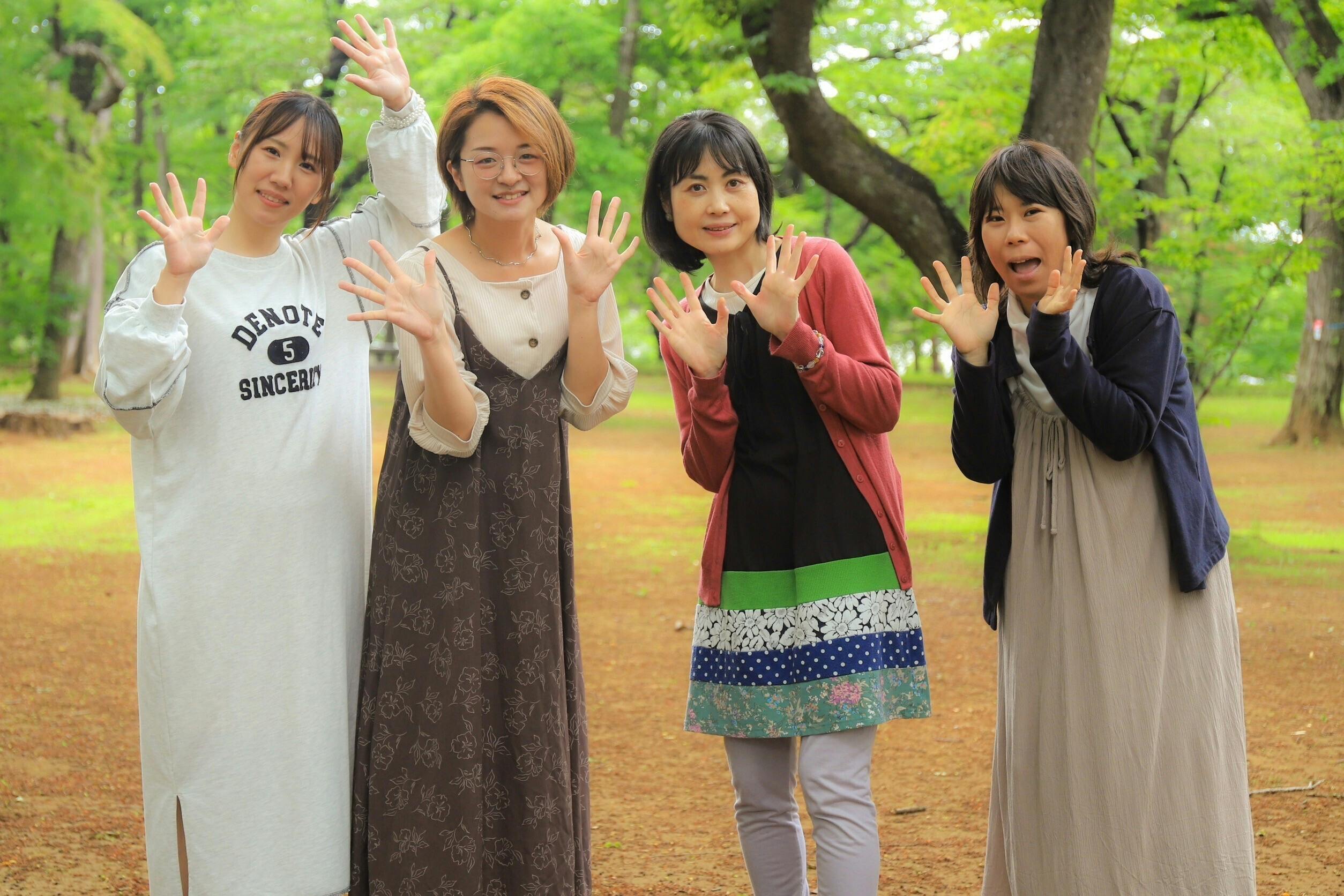 左から、クリエイターのKomoeさん。島袋栞(起案者)。栄養士&離乳食アドバイザーの吉田梓さん。カメラマンのChikuさん。