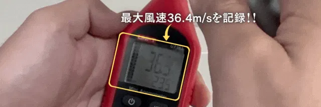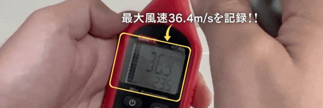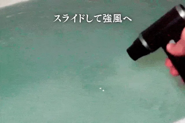 ご覧いただいた通り、少しスライドすると弱風、大きくスライドすると強風を作り出すことが可能です。