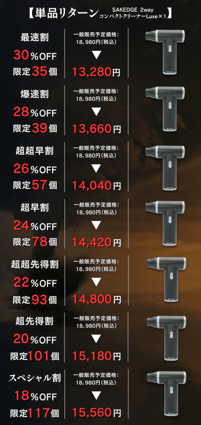 「SAKEDGE 2wayコンパクトクリーナーLuxe」が皆さまの日々の作業を助けられる日が来ることを心より願っております。