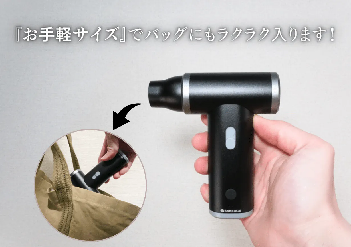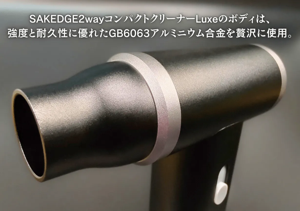 110,000RPMを生み出す高性能モーター、送風・吸引の2way機能、アルミニウム合金の高級感、大容量バッテリーを併せ持った「SAKEGDE 2wayコンパクトクリーナーLuxe」。