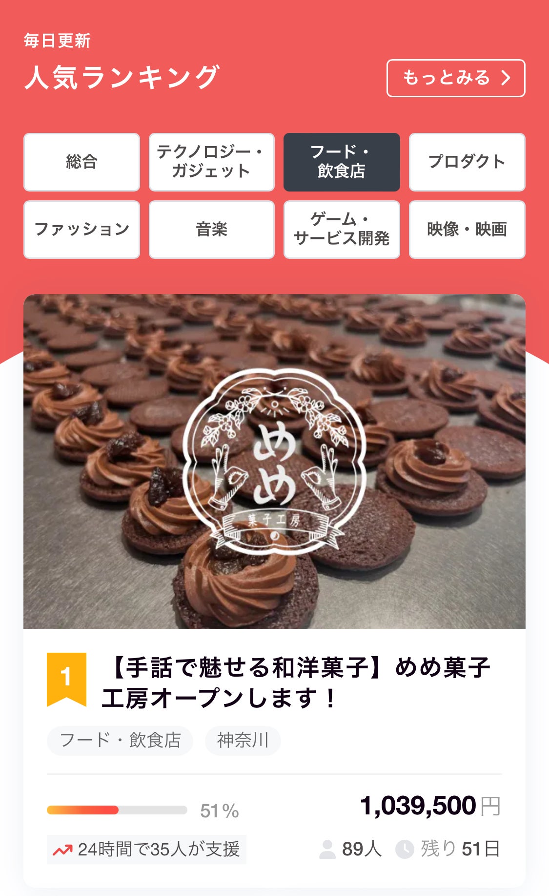 クラウドファンディング開始3日目で、めめ菓子工房は目標金額の50%を達成しました。