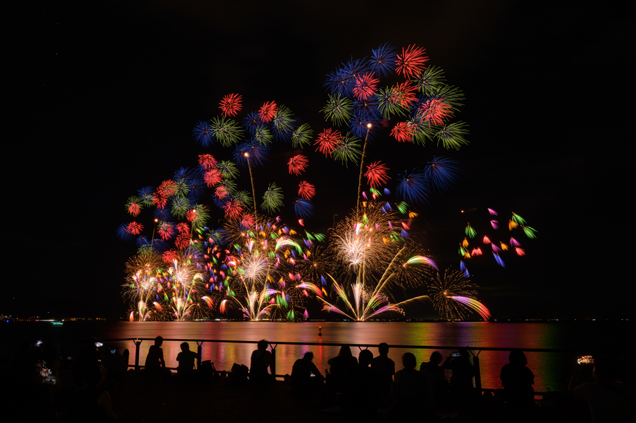 そういった気持ちから、2023年、有料観覧席の拡大とともに、2日間で合計20,000発の花火を打ち上げることで「西日本有数の湖上花火大会から日本有数の湖上花火大会へのパワーアップ」をしました。