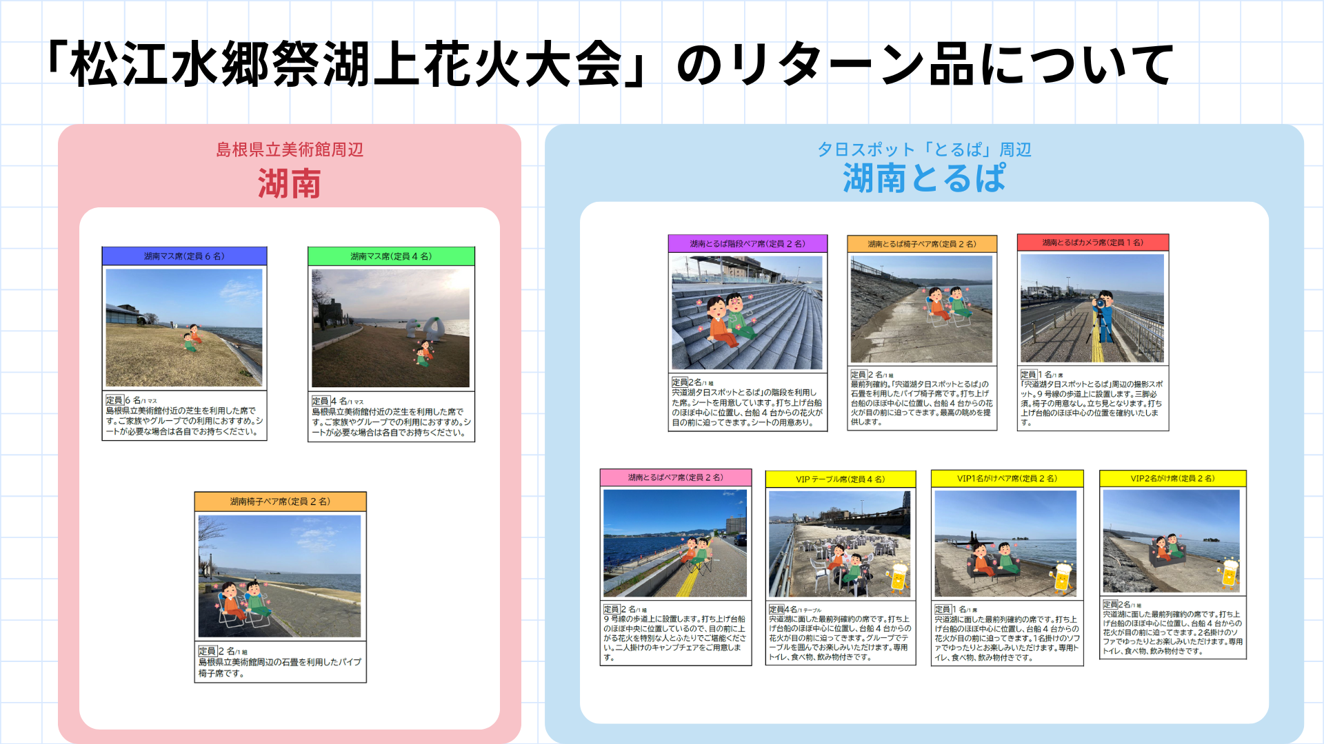 リターン品の有料観覧席一覧(拡大してご覧ください)