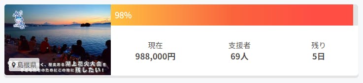 残り5日となりました。松江水郷祭はまだまだみなさんの支援を必要としております。