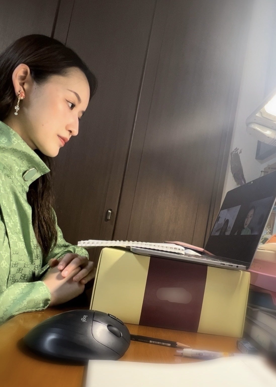 GW後半スタート!皆様いかがお過ごしですか?お天気の良い日が続き、嬉しい限りです!今日の写真は、お家でZOOMを使って英会話レッスンを受けている様子。大会には世界各国からミス達が集まり、コミュニケーションは全て英語で行います。スピーチ審査や質疑応答も全て英語です。私は約1年前から英会話レッスンを続けており、最近は大会に特化したスピーチ練習も加え、週3回の英会話レッスンに励んでいます。ここで私がお伝えしたいのは、1つ目標を決めると、それに向かって色んなベクトルから着実に成長する事ができるということ。今回私は、【世界大会でグランプリを取る】という大きな目標のために、複数な小さな目標を立てて頑張っています。例えば、堂々と英語スピーチをするため、英会話レッスンに励んでいること。身体を引き締めるため、初めてジムに通い、食事を見直したこと。まだグランプリを取る目標は達成していませんが、既に、英語を上達させたり、美と健康を増進したりと確実に自分を成長させることができています。意味の無い挑戦なんてない!成長と成功しかない!私は身をもってこの事を皆さんにお伝えしていきたいです。
