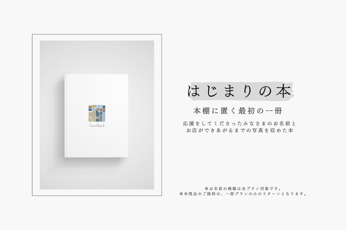 また、支援プランによっては「Good Rack はじまりの本」が返礼品として設定されています。お店に置くものと同じ本をご自宅にお届けします。詳しくはそれぞれのリターン詳細をご確認ください。