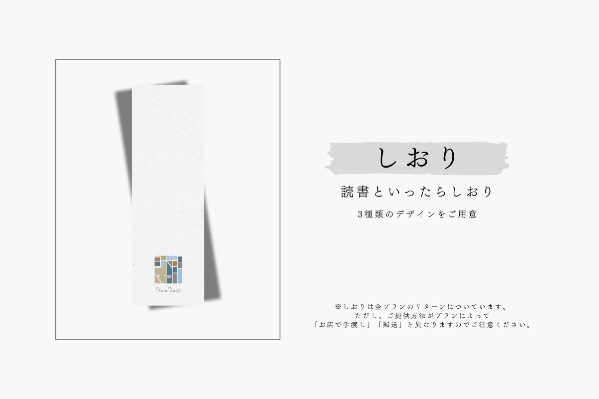 本に没頭できるカフェ「GoodRack」のロゴが入ったしおりを、ぜひ日常の読書でご利用ください。