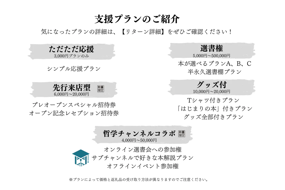 また、支援プランには「選書権」をご用意し、みなさんが読みたいと思う本をできるだけたくさん置くことができればいいなと思っています!