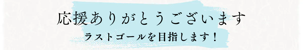 開始からわずか2時間足らずで当初目標の100万円を達成することができ、先日ネクストゴールも達成することができました。本当にたくさんのご支援をいただき感謝の気持ちでいっぱいです。改めて御礼申し上げます。
