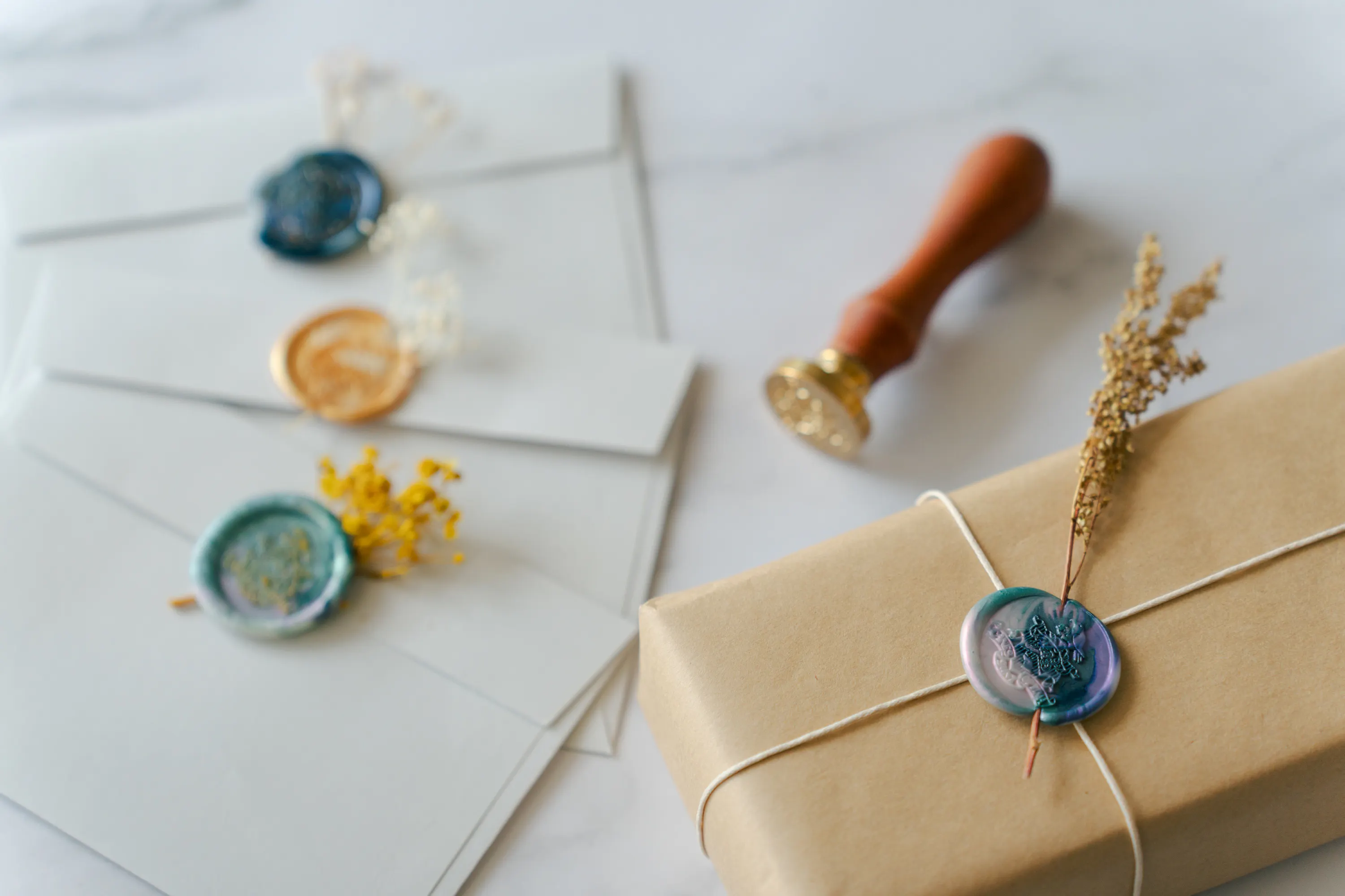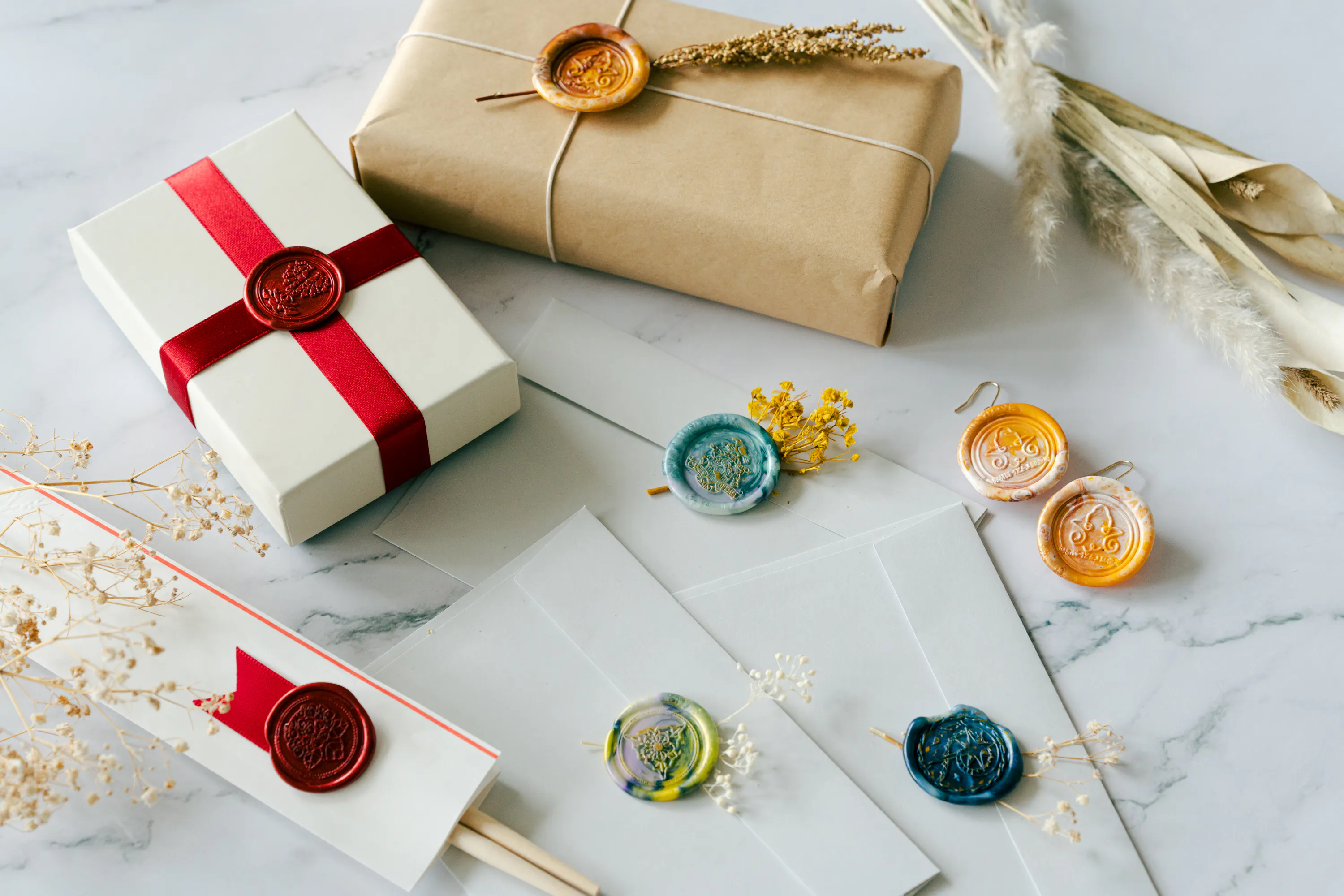 現代では仕分けの機械化により手紙の封にはあまり使われなくなりましたが、お酒のボトルやプレゼントのパッケージなど、高級感を演出するためのワンポイントとして使ったり、アート作品を作る際にのアクセントに使ったり、アクセサリーを作ったりと、さまざまな用途に活用されています。